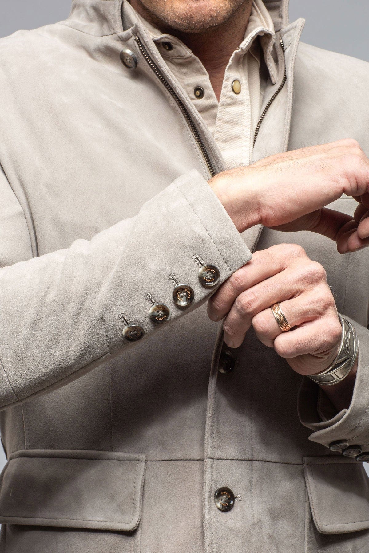 Effortless sophistication meets rugged elegance in the Maximus Blazer, a piece that merges the raw, natural beauty of lambskin suede with the timeless appeal of tailored outerwear. Crafted in Italy, the Maximus boasts a luxurious, buttery-soft suede finish that instantly evokes a sense of "rugged luxury." Whether you're layering over a button-down for a refined, yet casual, look or pairing with jeans for a modern, Western-inspired edge, the Maximus delivers in every setting. Thoughtfully detailed with genuine horn buttons, deep patch pockets, and a stand-up collar, it strikes a balance between rugged and refined.