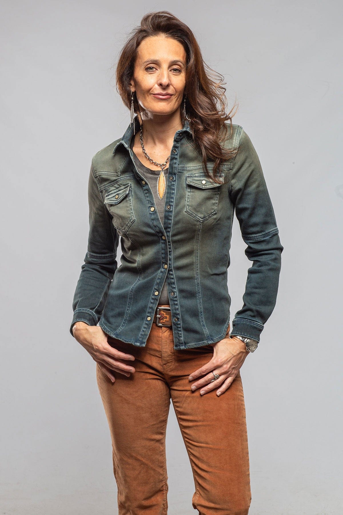 The Maddi Over-Dyed Western Shirt is your answer to effortless cool—crafted in Italy and meticulously washed and over-dyed for a one-of-a-kind color and character. This shirt combines the rugged spirit of classic Western wear with a modern, flattering fit.