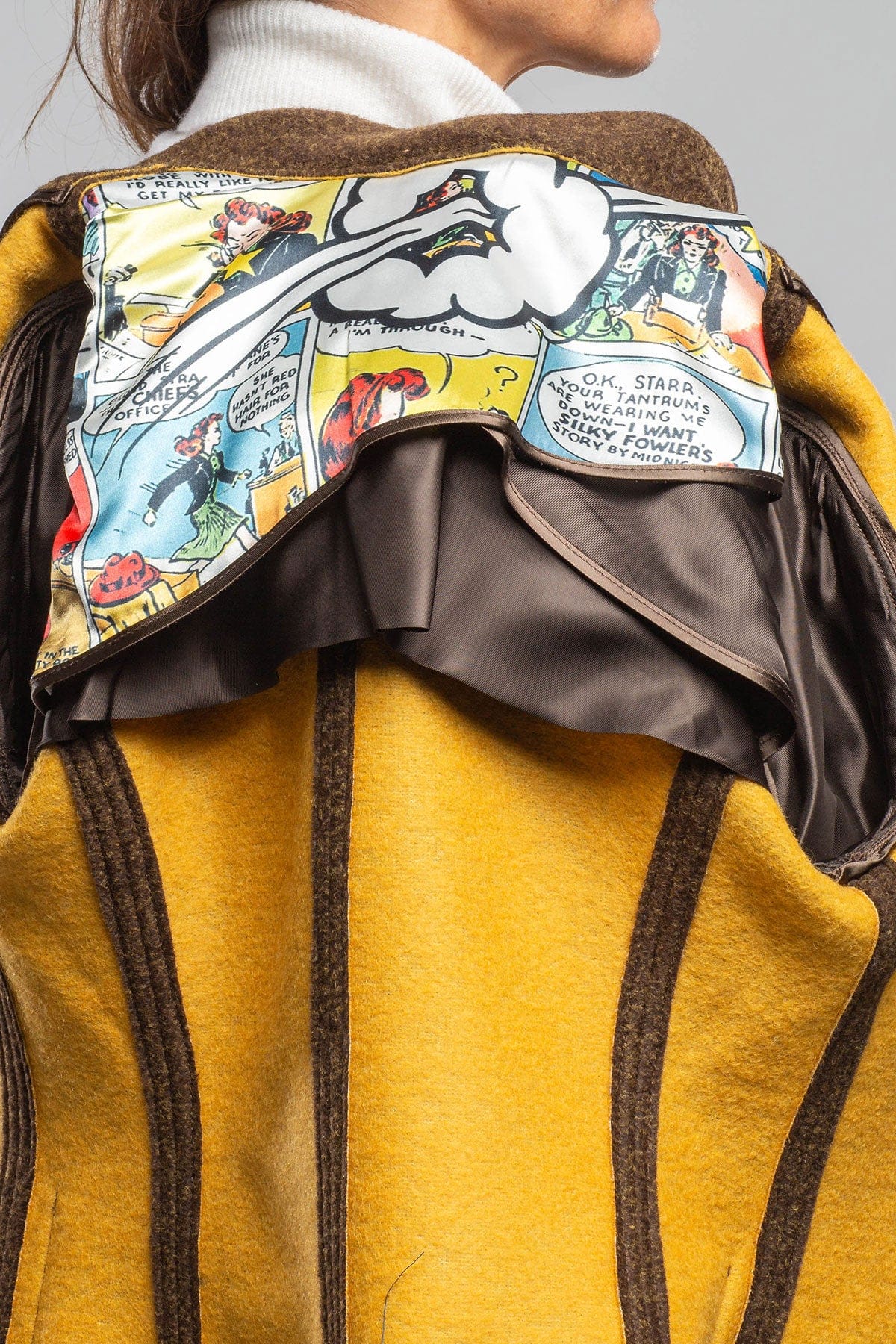 - 100% double face wool with brown melange on the exterior and yellow interior
