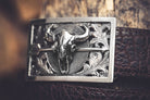 The Childress 1805 trophy buckle showcases a striking sterling silver bison skull and arrow at its center, a bold design that embodies Western heritage and strength. Surrounding the centerpiece are intricately hand-cut filigree details, each engraved with precision for a refined and elegant finish. Measuring to fit belts up to 1.5" wide, this buckle is both versatile and commanding in presence. Handmade and engraved in Texas by Clint Orms Engravers & Silversmiths, it carries the artistry and individuality of master craftsmanship. Due to its handmade nature, each buckle features subtle variations in the engraved patterns, making every piece one-of-a-kind.