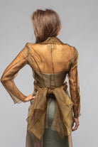 - Beautiful sheer coat that is the perfect complement to your evening outfit when you just want that lightweight little something to cover up your arms. Rather than hassle with a wrap that continues to slide off your shoulders slip this elegant piece over your dress and then fold it up into your clutch when you're ready to start dancing. We also love this coat worn under the Morgana Toscana Print Coat in Dark Olive!