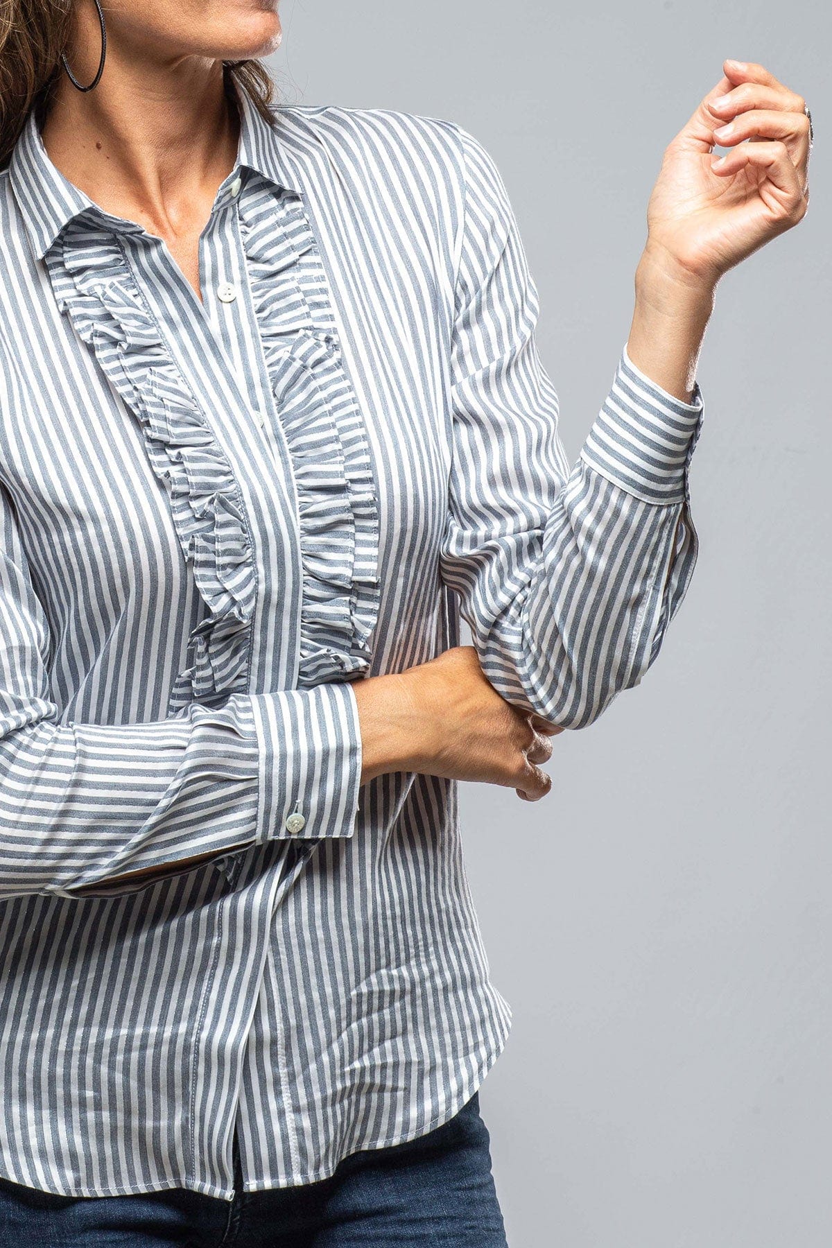 Diana Ruffle Front Stripe Shirt in Navy/White