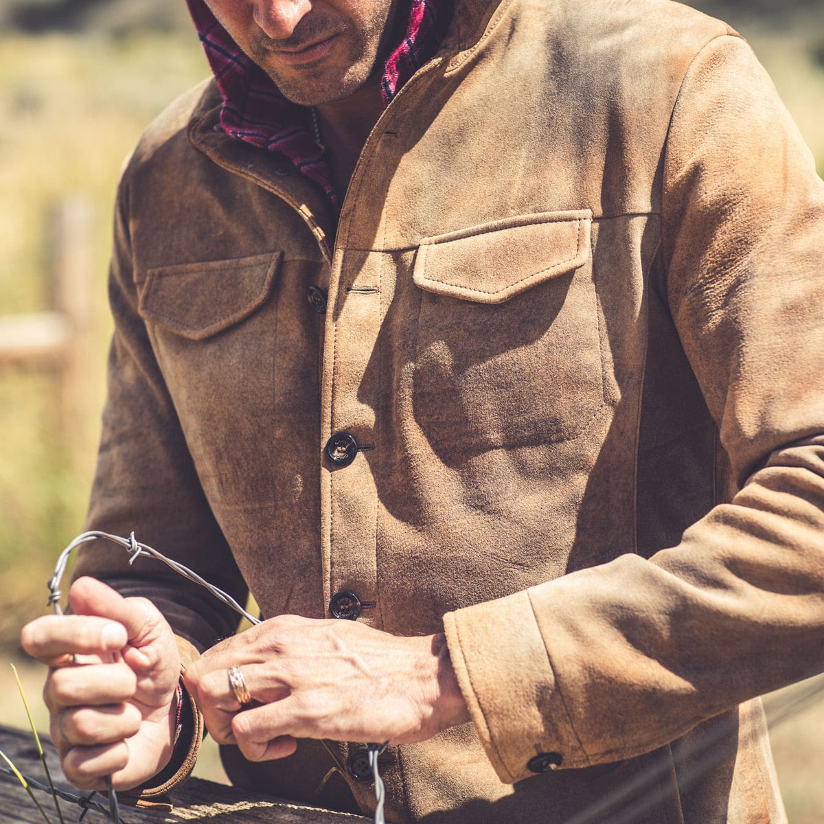 Born to layer, the Aldrich Distressed Suede Jacket will serve you well with just about any pairing. The sumptuously soft suede features an impressive stonewash finish for a worked and lived-in feel, plus has a substantial heft to it that feels great. A casual substitute for a sport coat, or the perfect midweight outerwear.