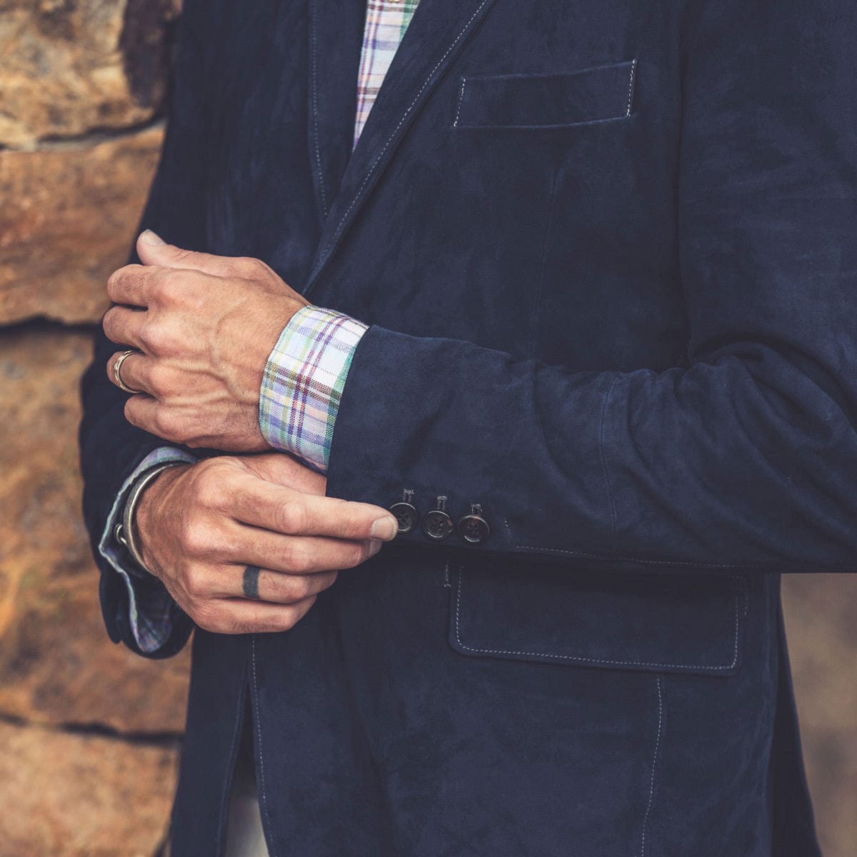 Crafted from premium lambskin suede, the Maldito blazer blends rugged charm with classic sartorial elegance. This double-vented sport coat is meticulously constructed to highlight its durable yet supple leather, offering an artisanal quality to its design. Featuring a traditional notched collar, elegant button cuffs, and secure horn button closures, the Maldito is a testament to timeless style and craftsmanship.