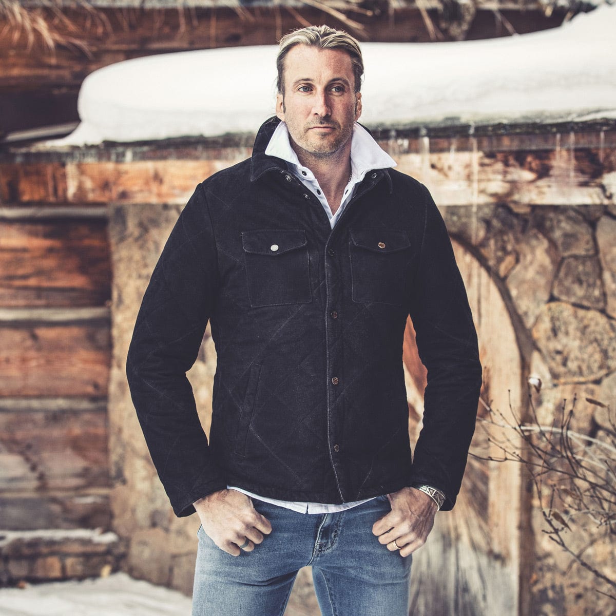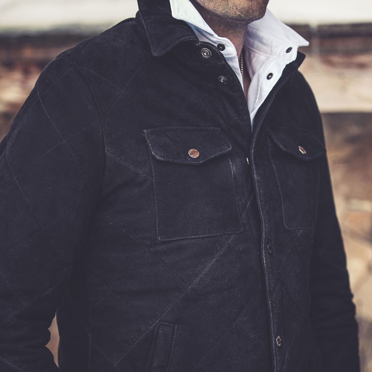 Rooted in heritage style, the Milo is a lightweight quilted suede jacket perfect for transitional seasons. Featuring an impossibly soft Italian suede exterior in a rich black color, the Milo boasts a durable look that feels both refined and masculine. Two chest pockets, slash pockets at the waist, snap-front closure, and a comfortable, modern fit complete the best-selling style.