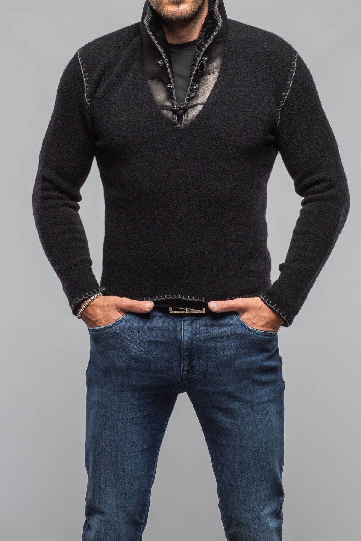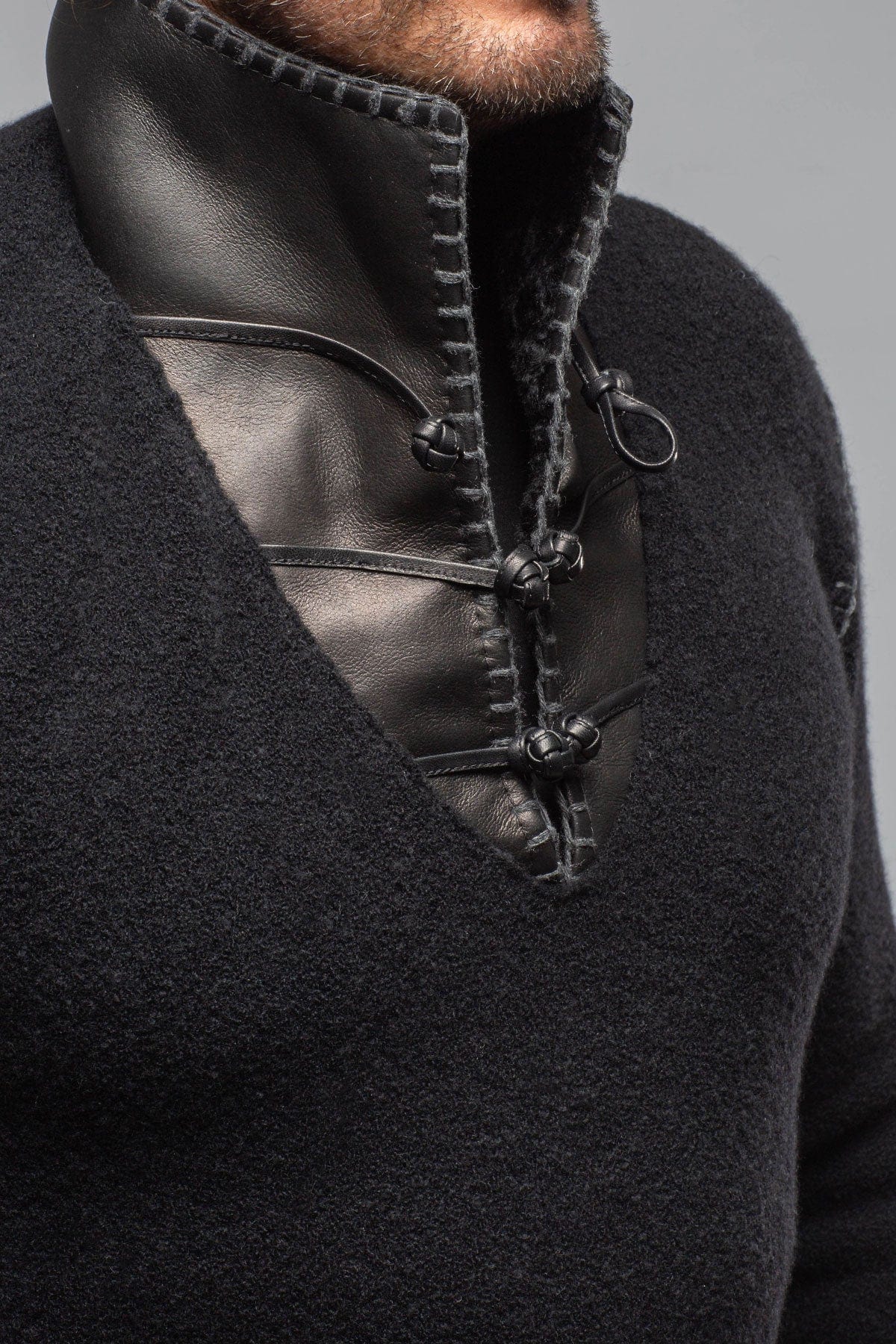 An artful fusion of Italian cashmere and virgin lambswool, the Saint is elevated by a dramatic shearling collar with hand-laced leather toggles. The plush fleece trim adds both structure and softness, while the body’s brushed texture delivers warmth without weight. Rugged yet refined, it’s a statement piece made for alpine winters and city streets alike.
