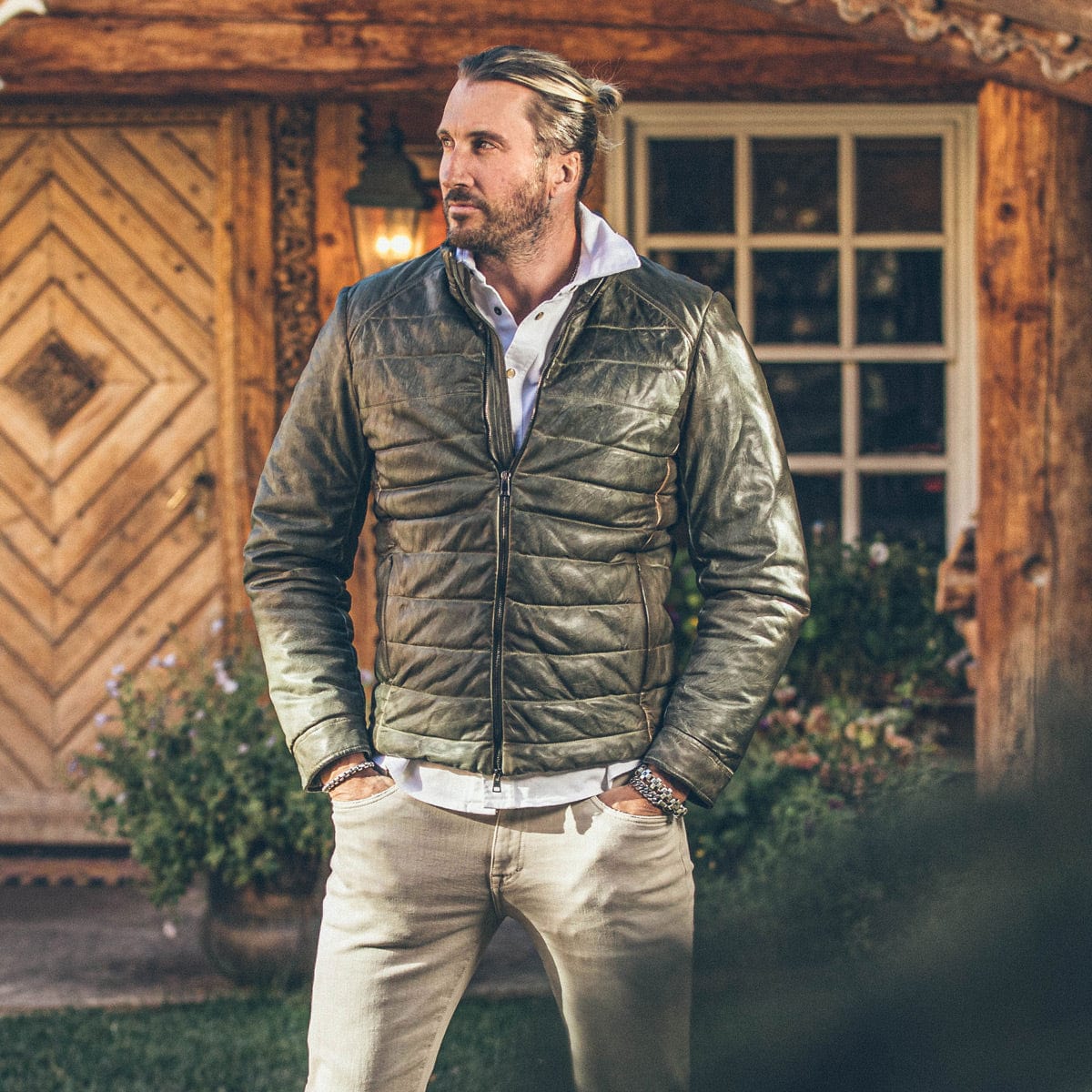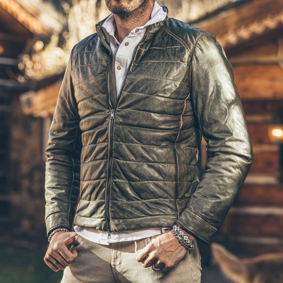 The Vintage Leather Quilted Jacket combines the warmth of a quilted silhouette with the lived-in charm of washed, Italian lambskin leather. Lightly padded and cut for a tailored fit, it offers everyday versatility without sacrificing style. Finished with an unexpected interior lining print that hints at the road less traveled—this is the jacket you’ll reach for when comfort, character, and confidence are all non-negotiable.