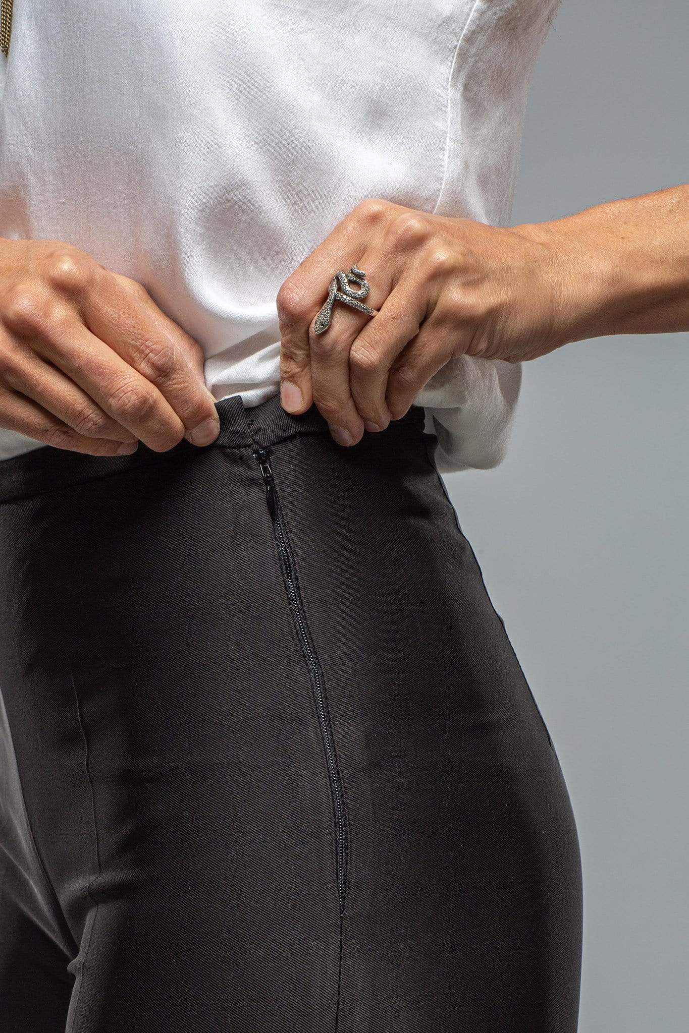 Arguably, the most flattering pants we have in our collection, regardless of your height or body type. The fabric, known as "sharkskin", drapes beautifully without any wrinkles and has just enough weight to maintain its shape. The clean waistline and side zip closure seem to elongate the palazzo-style pant legs so that you don't need to be 5'8" to embrace this look. And did we mention how great it fits in the derrière! Throw on some comfortable wedges and pair with the Zoe Sharkskin Top or a fitted leather jacket and you have an incredible outfit for any time of year.