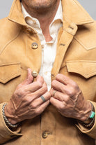The AW Shearling Shirt fuses Western heritage with Italian craftsmanship. Cut from supple suede sheepskin and fully lined in natural shearling, it delivers rugged warmth in a shirt-jacket silhouette. Western yoke details, horn buttons, and flap chest pockets underscore its classic character, while the tailored fit makes it sharp enough to stand on its own or layer effortlessly.