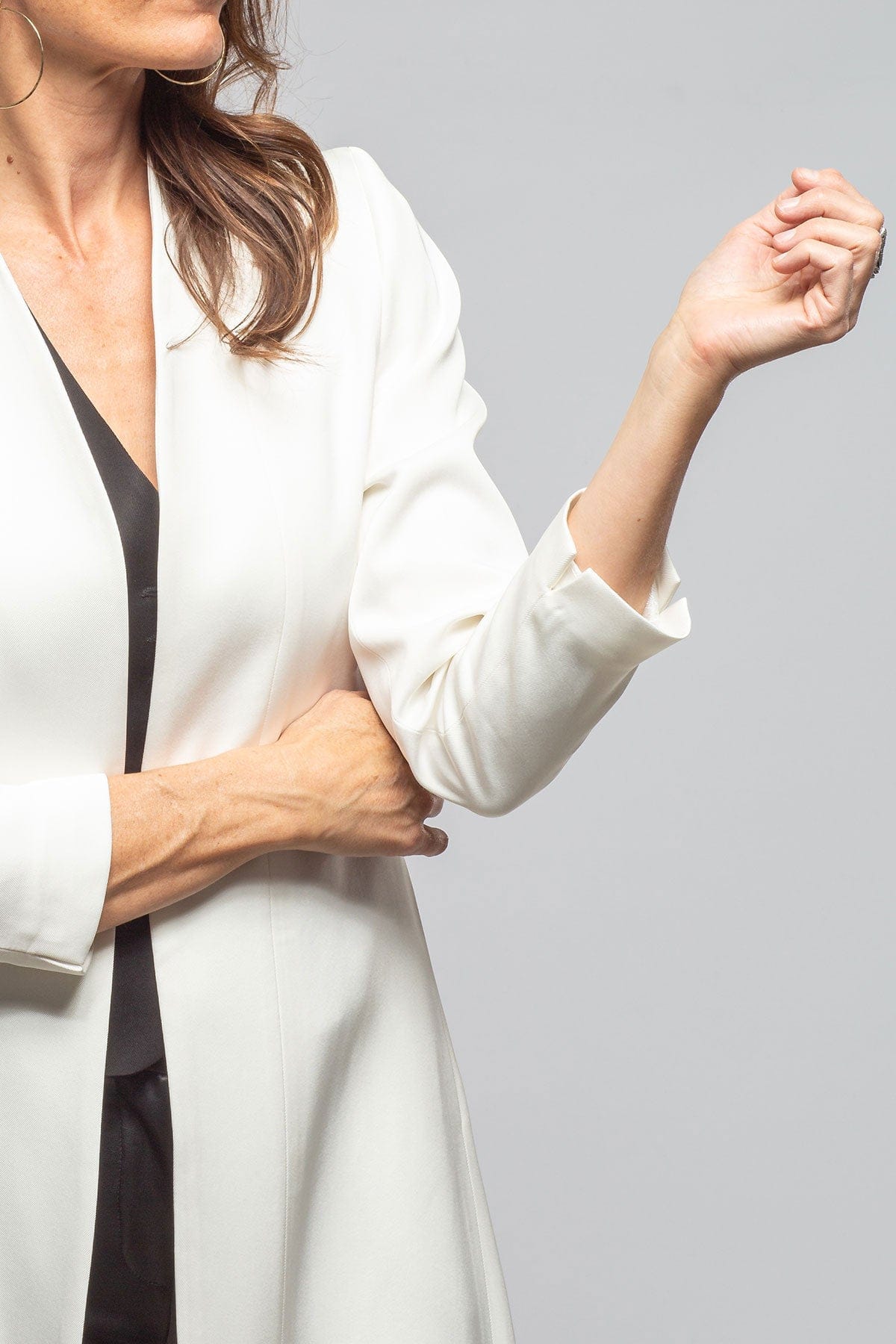 Exceptionally flattering, the Morgana Long Coat is a wonderful addition to any wardrobe, regardless of your height or how formal or casual you normally dress. This is about style. And whether you chose to wear this coat with denim, over a dress, or paired with the Maxi Sharkskin Pants you simply can't go wrong. Its lines are clean and shapely. The material, referred to as 'sharkskin', is made from twisted viscose yarn that has just enough weight to drape beautifully. The hand of the fabric is smooth and almost slippery so that it doesn't wrinkle. We love the slit in the back to add that touch of lightness and movement so that it doesn't feel remotely overpowering.