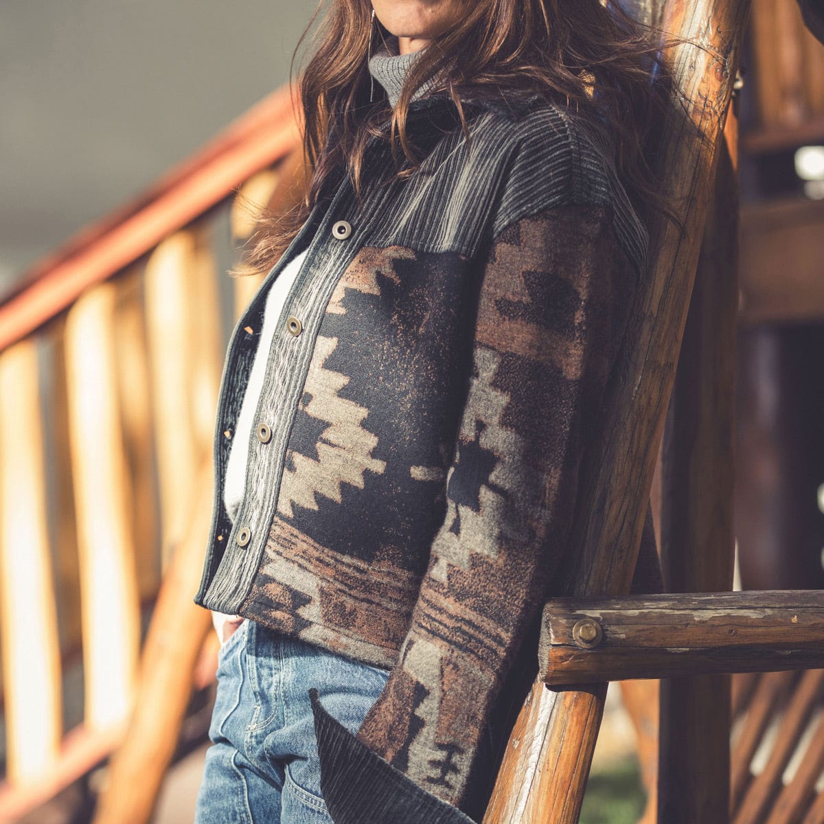 - Such a cool combination of corduroy and a woven fabric inspired by American Indian textiles. We love the cropped relaxed fit of this piece to throw on with any one of our awesome AXELS denim, moleskin, or corduroy pants!