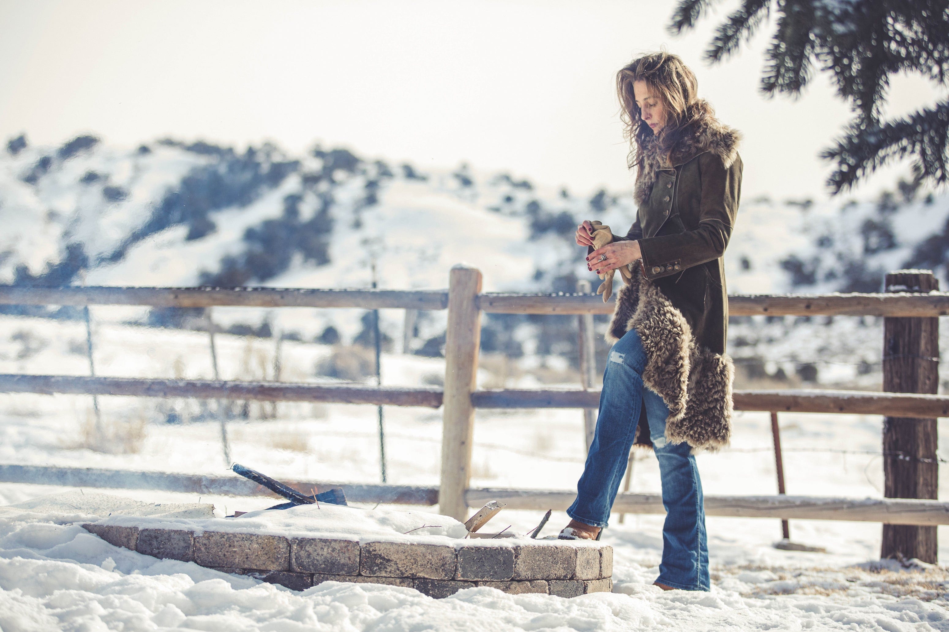 French Military Coat In Vintage Green W/ Beige Curly Lamb