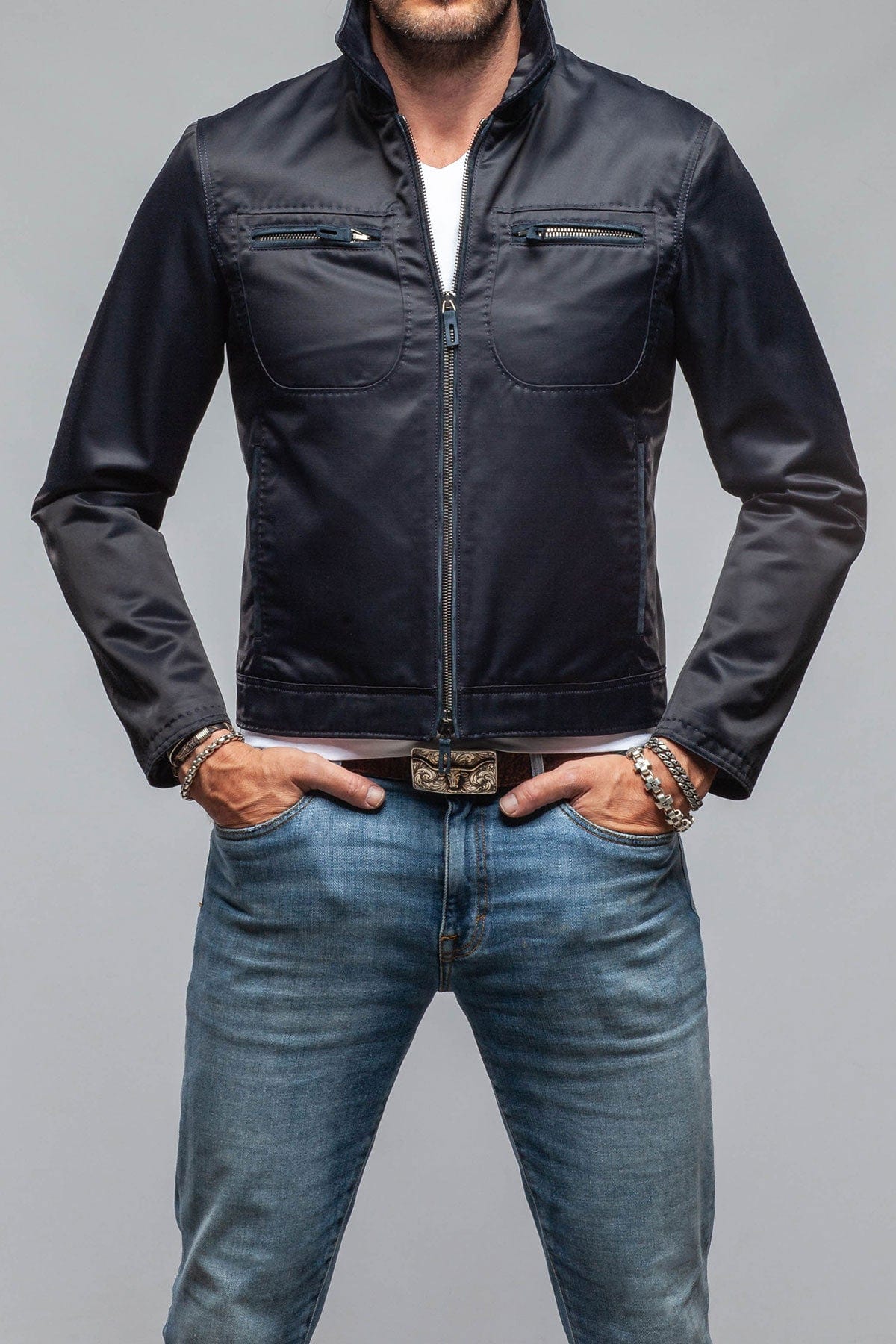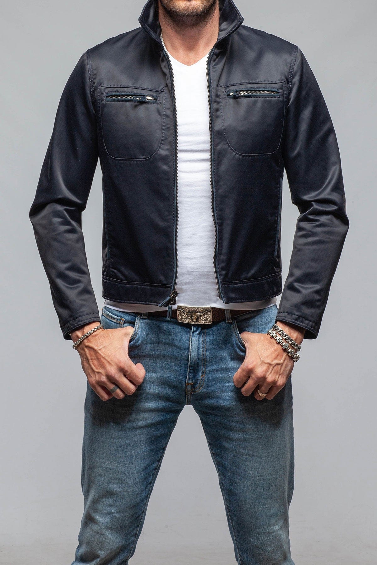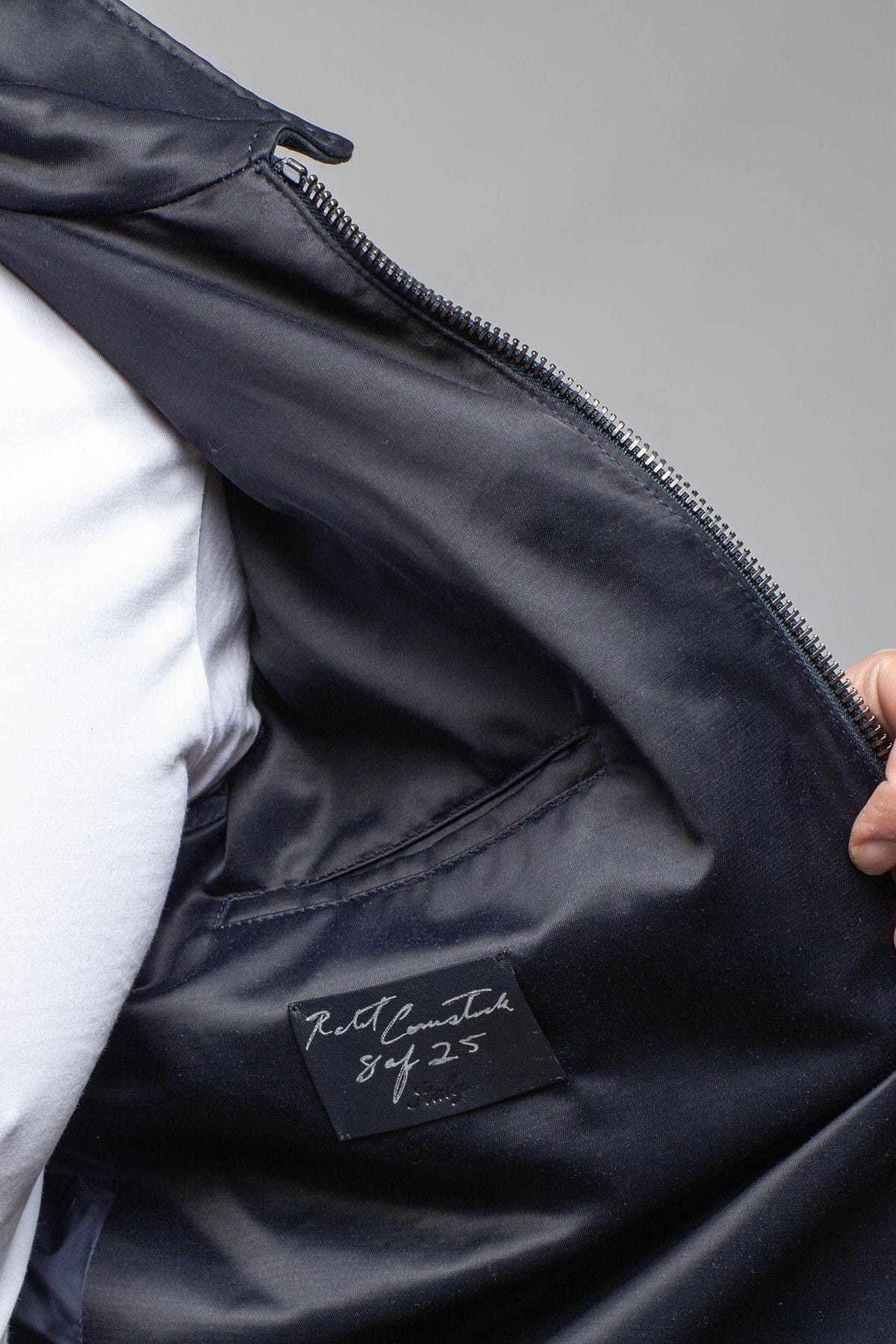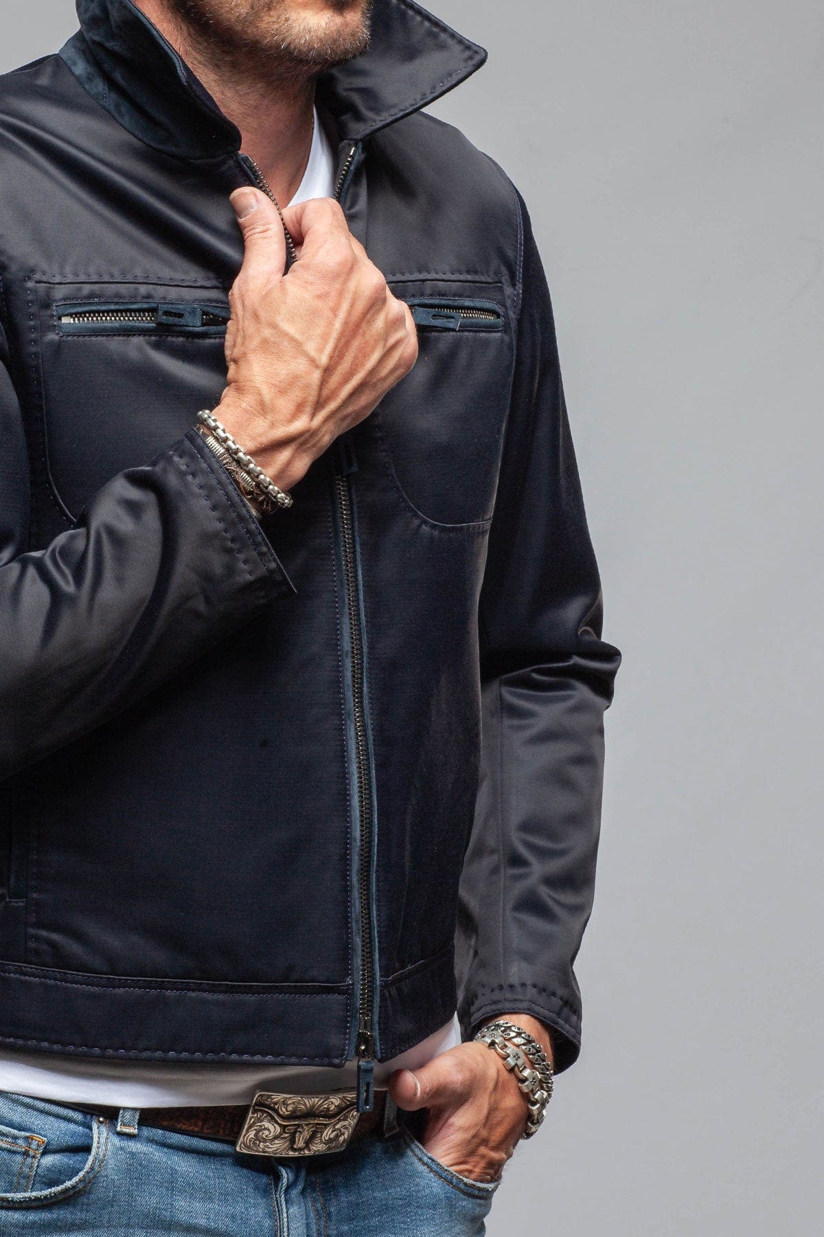 With a sleek silhouette crafted from Limonta 1893 nylon, the streamlined moto design captures a retro-modern aesthetic. Light-catching silky calf suede beneath the cuffs and collar add a touch of understated luxury, while a running pick stitch frames the prominent seams, emphasizing a timeless heirloom.